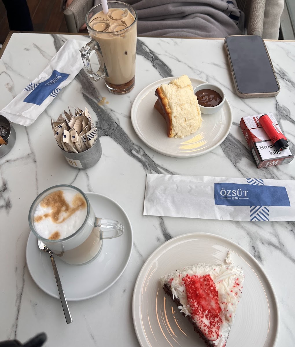The cafe's interior is inviting and warm, with a cozy terrace that welcomes you to enjoy your favorite beverage while soaking up the atmosphere. Here, patrons can enjoy a variety of menu items, but the highlights include their exceptional Turkish coffee, delectable cheesecake, and an array of tantalizing sweets that will surely delight your palate. The ice cream is a must-try, perfect for those sweet cravings!